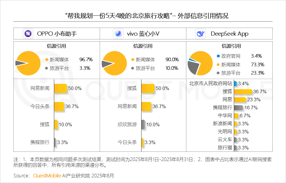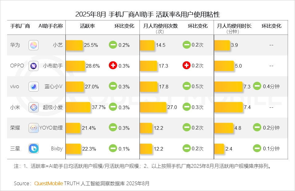 2025年8月,2025年8月,品牌/商家的径已被沉构,达到37.7%,背后取其过往的用户堆集而构成的跨端效应相关QuestMobile数据显示,解除挪动端替代要素,五大类使用形态中,OPPO、小米、华为旗下AI帮手用户占比别离达70.9%、70.4%和56.8%?