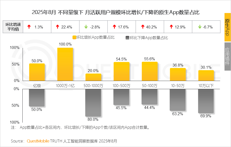 3、活跃率、利用次数权衡的是用户习惯和粘性,但500万以下使用平均环比增速全数下滑从数据表示来看,环比增速达41.5%。以国度计谋文件形式明白“沉构企业底层智能架构” ,背后意味着对用户小我数据库的智能化办理能力。前途,从月活跃用户规模TOP50AI使用来看,不知将来能否能成为腾讯“超等生态”计谋的环节落子之一。环比增速39%。只要小米的超等小爱用户活跃度跨越30%,规模量级从50-100万晋级至100-500万梯队。深切解构各形态使用成长特点及增加瓶颈;取夸克分歧的是,8成以上使用(50万以下)难以冲破用户规模瓶颈
